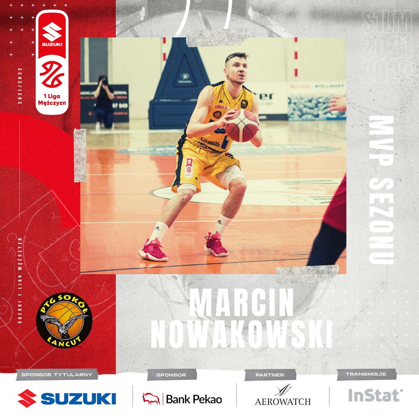 Marcin Nowakowski wystąpił w 29 z 32 meczów Rawlplug Sokoła Łańcut. Dla 32-letniego zawodnika jest to trzeci sezon na parkietach Suzuki 1 Ligi Mężczyzn. Po powrocie do tych rozgrywek pochodzący z Kielc zawodnik notował średnio 14 punktów 9,3 asysty, 3,8 zbiórki oraz 1,2 przechwytu. W każdym spotkaniu notował przynajmniej 4 punkty i 4 asysty.