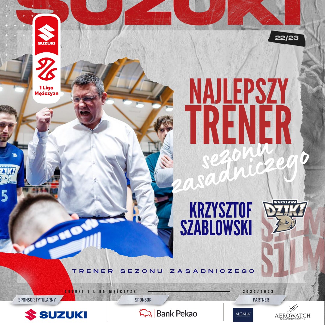Szkoleniowiec Dzików Warszawa, Krzysztof Szablowski najlepszym trenerem sezonu 2022/2023 Suzuki 1 Ligi Mężczyzn. W piątek ujawnimy imię i nazwisko MVP rundy zasadniczej.