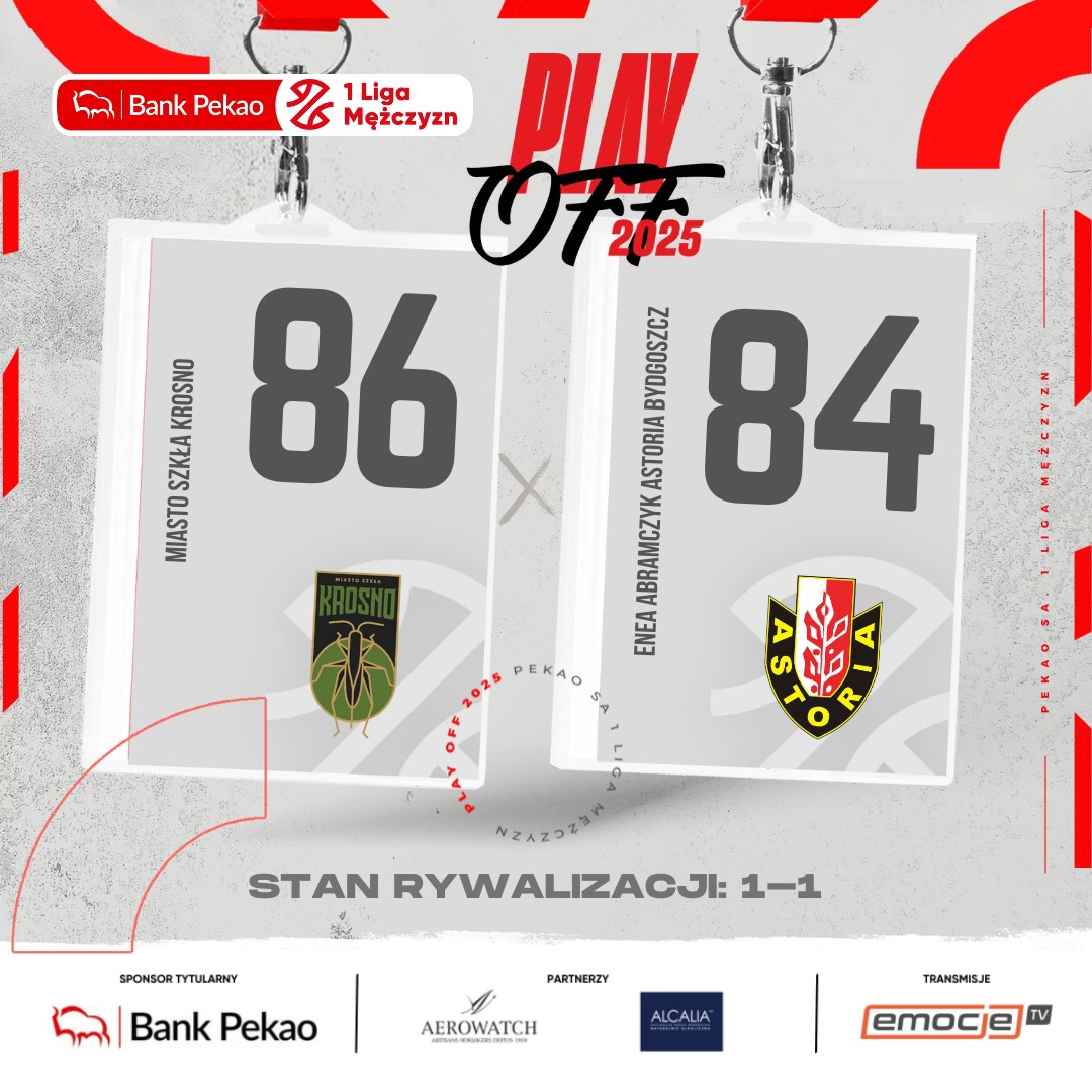 Mecz numer dwa finału Pekao S.A. 1 Ligi Mężczyzn dla Miasta Szkła Krosno. Gospodarze na początku drugiej kwarty prowadzili już różnicą 17 punktów, ale do ostatniej akcji meczu drżeli o końcowy wynik. 18 punktów i 7 zbiórek Michała Chraboty. Kolejne mecze 17 i 18 maja w Bydgoszczy.