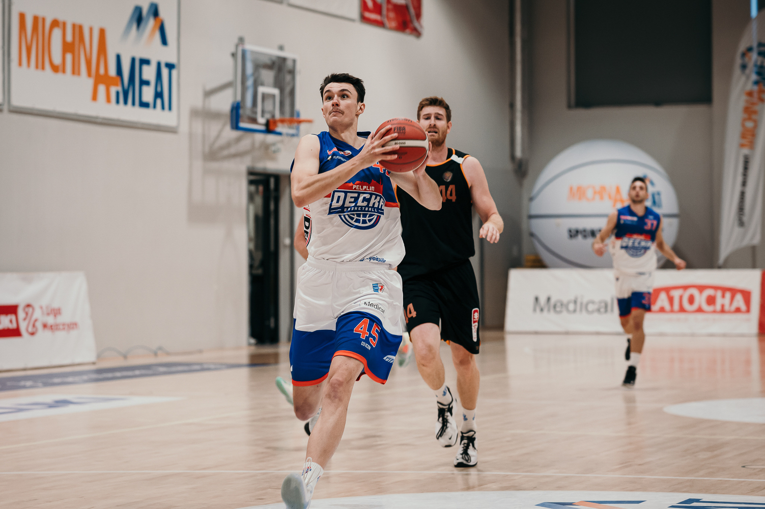 45, P. Leśniczak, celny lay-up |