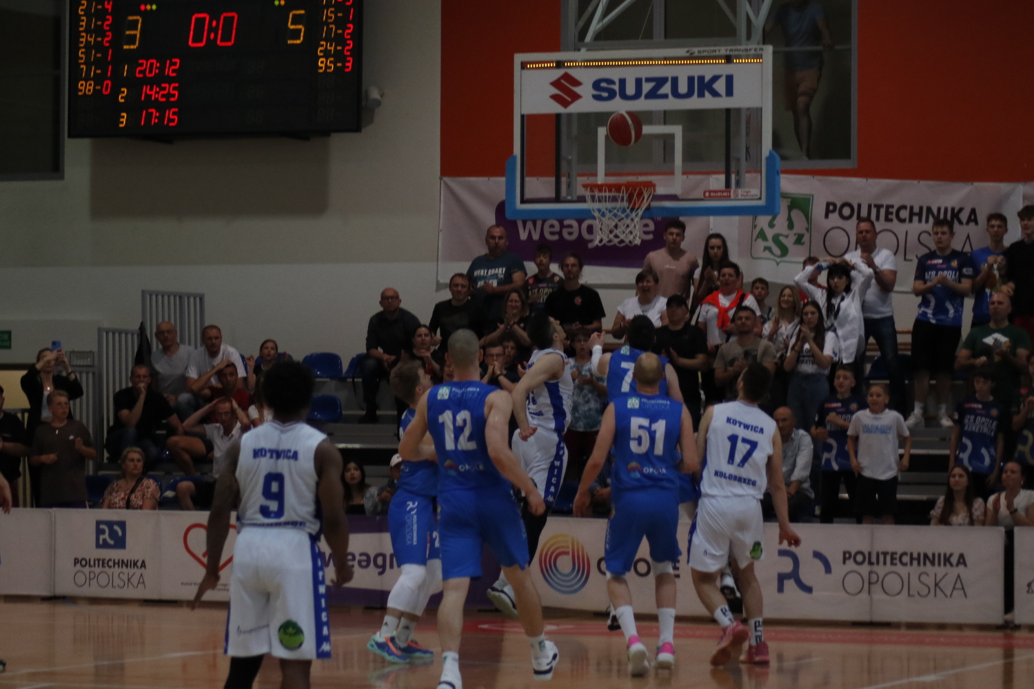 | Adam Kaczmarzyk (6.2) | wykonywany rzut za 3 | Damian Pieloch (8.2) |