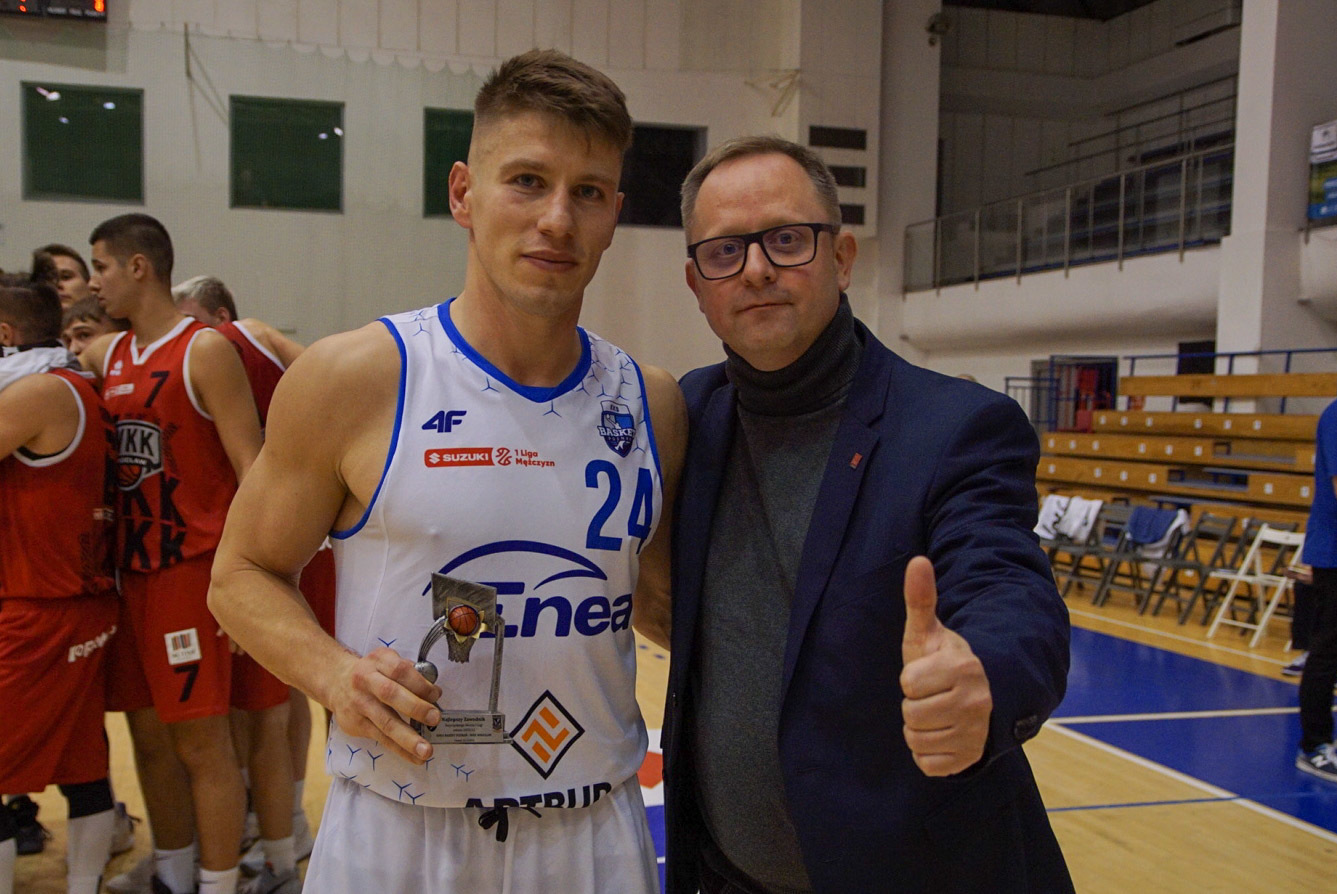 | Jan Nowicki (37.3) | skuteczność za 3 | Patryk Rosołowski (50) |