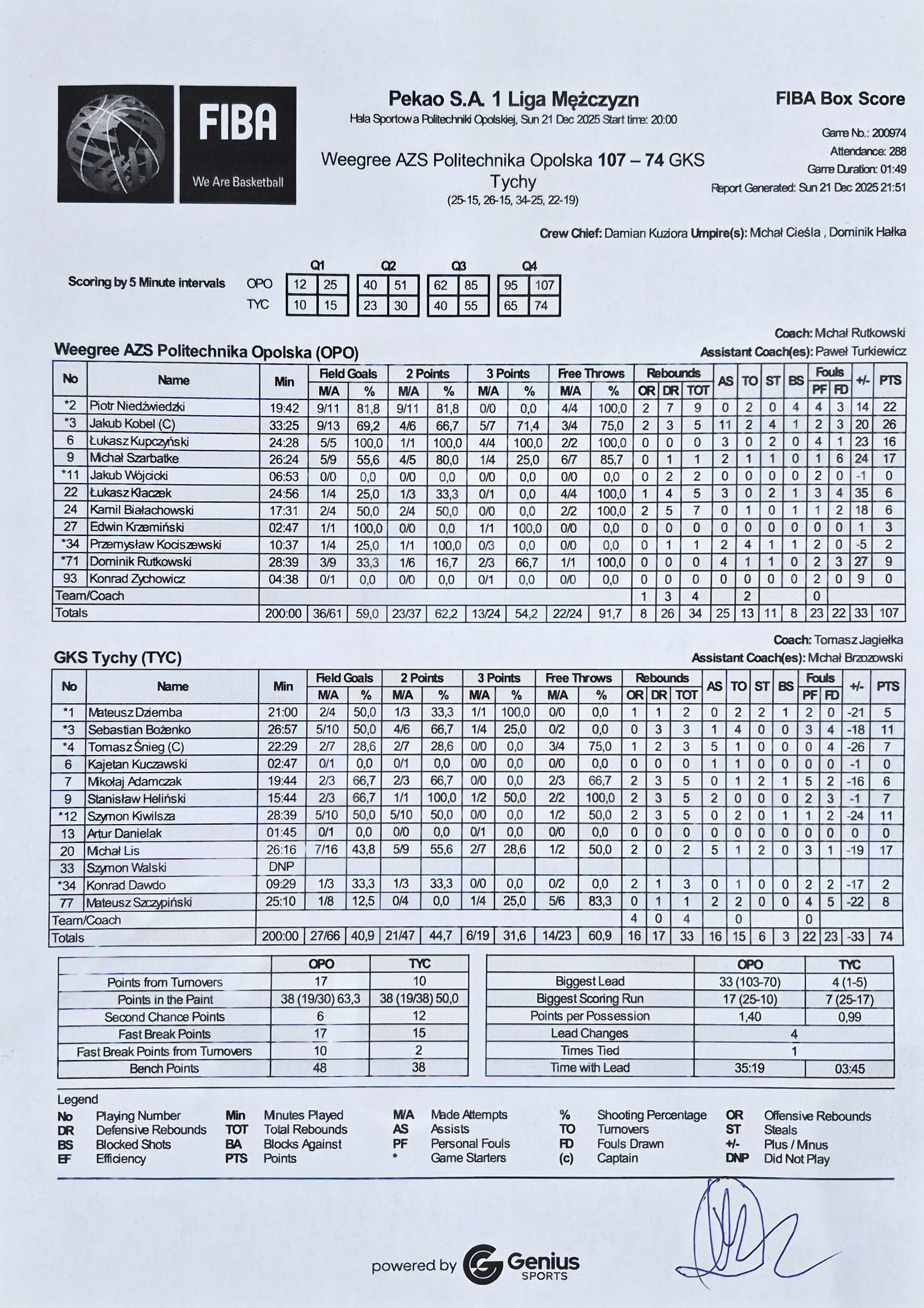 24 Kamil Białachowski 6 17:312/4 50.0   2/4 50.02/2 100.02 5 7   1 2 1   1   11 18