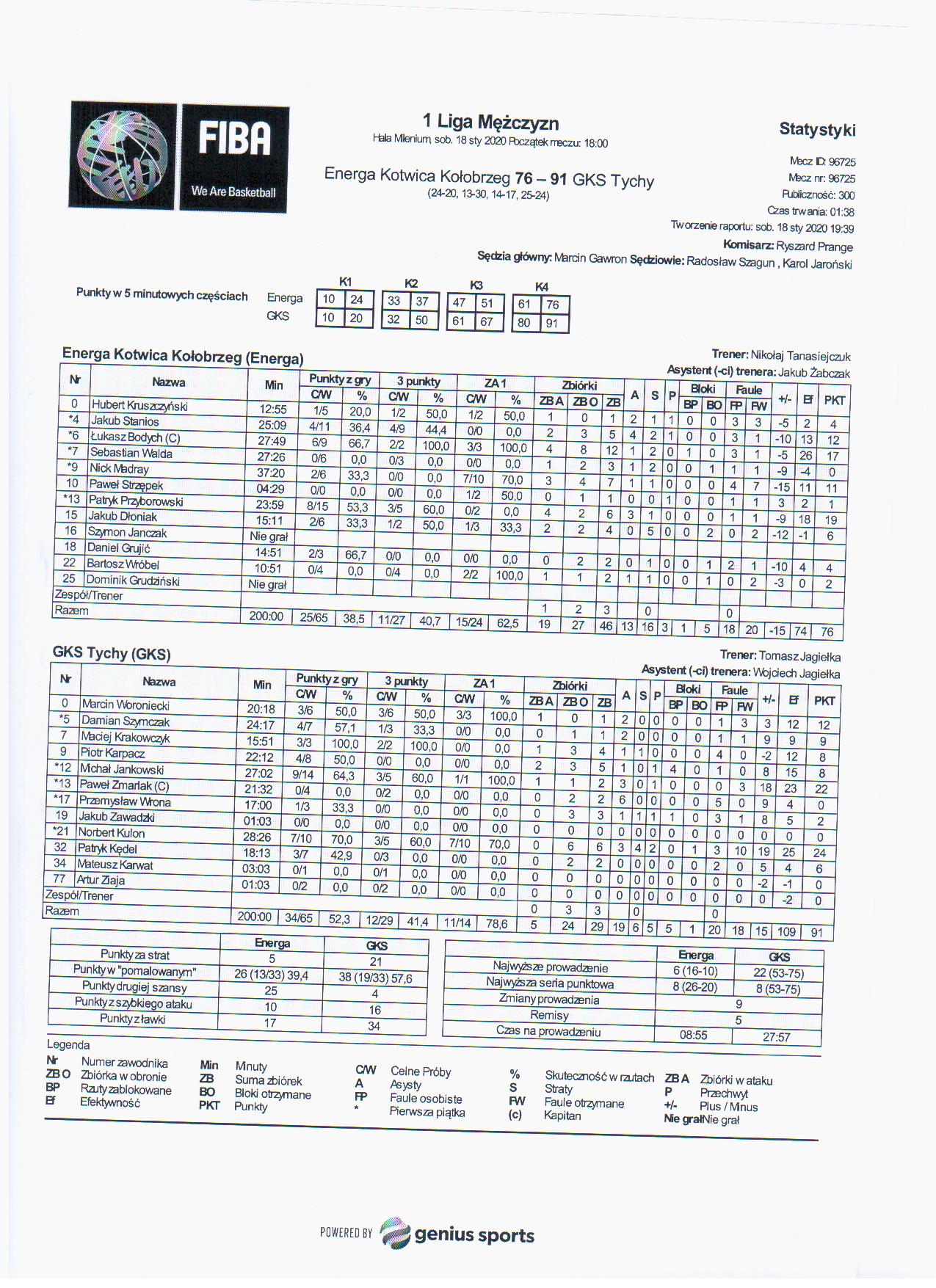 Sędziowie: Marcin Gawron, Radosław Szagun, Karol Jaroński | Komisarz: Ryszard Prange